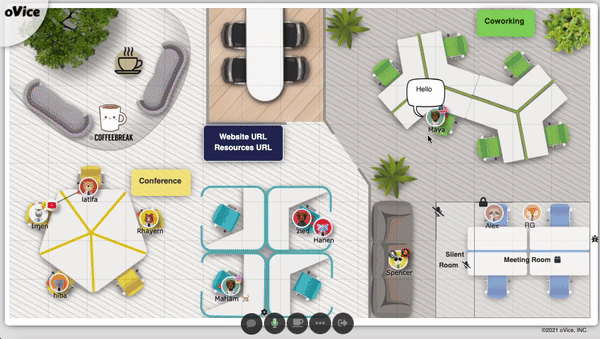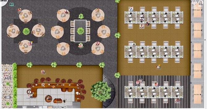 신종 코로나 바이러스의 확산으로 재택근무를 본격적으로 도입하는 기업이 증가하고 있다. 하지만 재택근무로 각자 물리적으로 떨어져 있다 보니 기업들은 커뮤니케이션의 부족과 조직관리의 어려움을 겪고 있다. 이러한 한계점을 극복하기 위해 아바타를 이용한 2D 가상 오피스, oVice(오비스)가 등장하였다. 아침에 아이콘이 나 대신 출근하여 온라인 오피스에서 근무를 하고 있으며, 실제 직장에서 동료에게 말을 걸 때처럼 아이콘을 움직여 다른 아이콘에게 접근하면 대화가 시작된다.